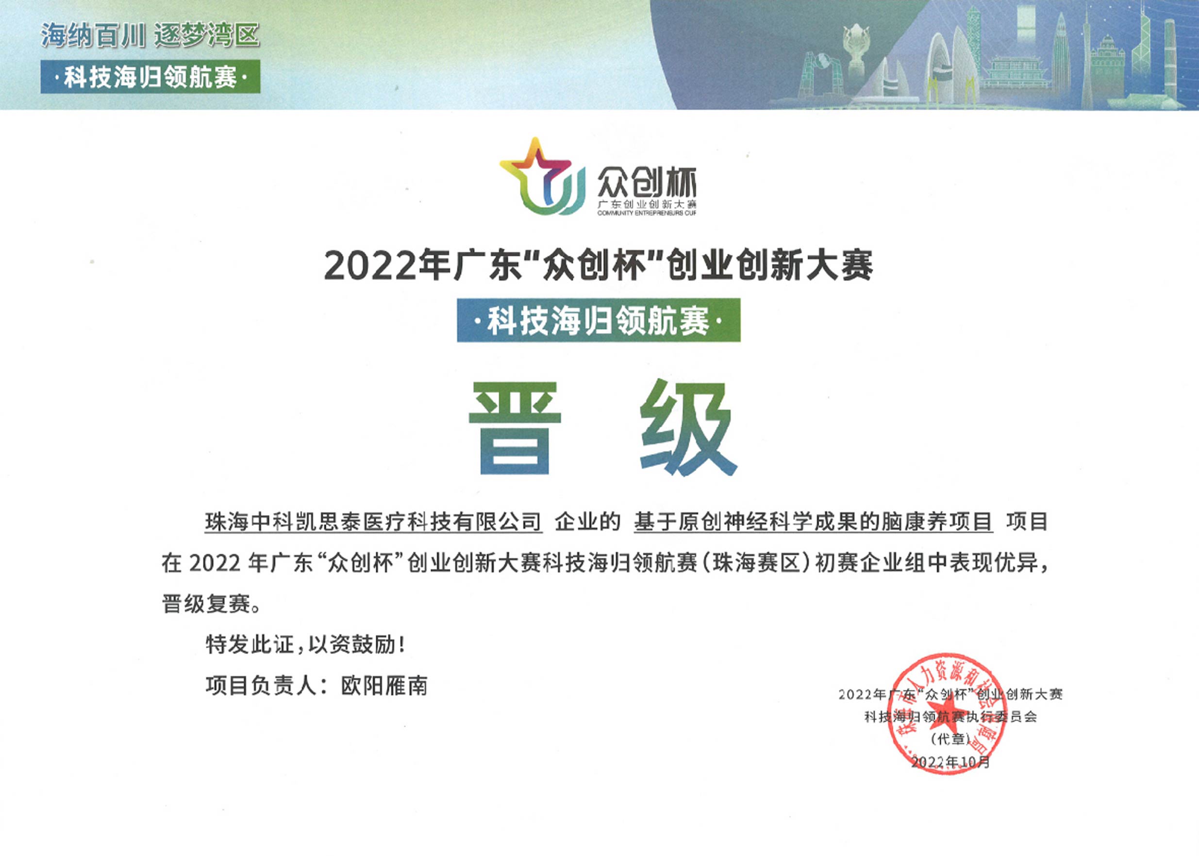 珠海中科凯思泰医疗科技有限公司以解决脑健康问题为主导方向,以创造更精准的脑健康食药产品,打造一体化脑健康生态系统,成为脑健康产业领导者和标准的制定者为企业愿景,为发展成为世界级企业而努力。